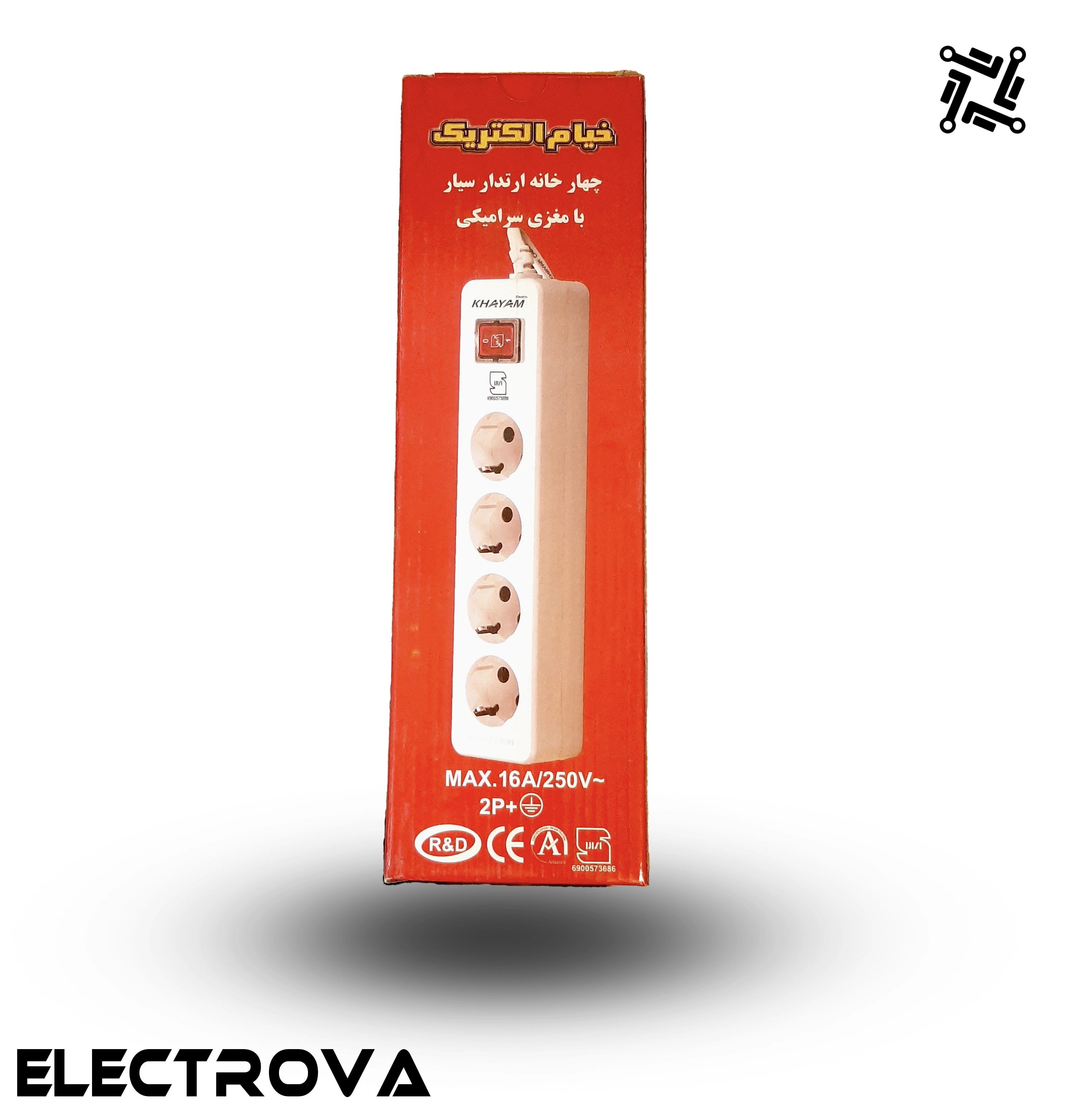 چهارراهی ارتدار خیام الکتریک مدل پارس با مغزی سرامیکی مقاوم و ۴ پریز استاندارد، برای استفاده همزمان از چند دستگاه برقی طراحی شده است. وجود ارت (زمین) ایمنی دستگاهها را بالا میبرد و کلید روشن/خاموش کنترل آسان برق ورودی را فراهم میکند.